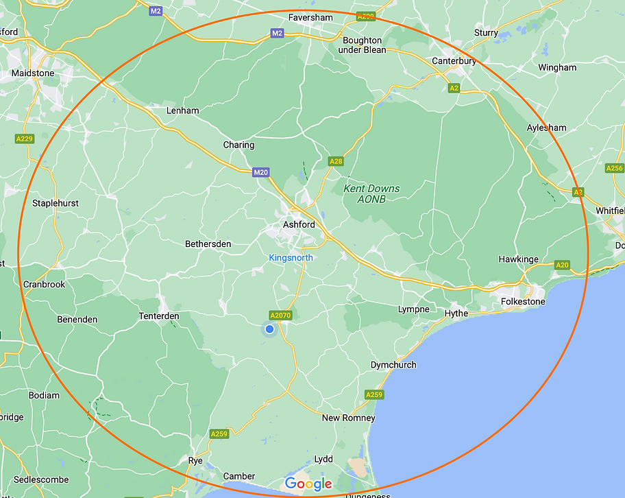 Geographical areas covered. If you are outside of this area, please contact me to enquire about options.